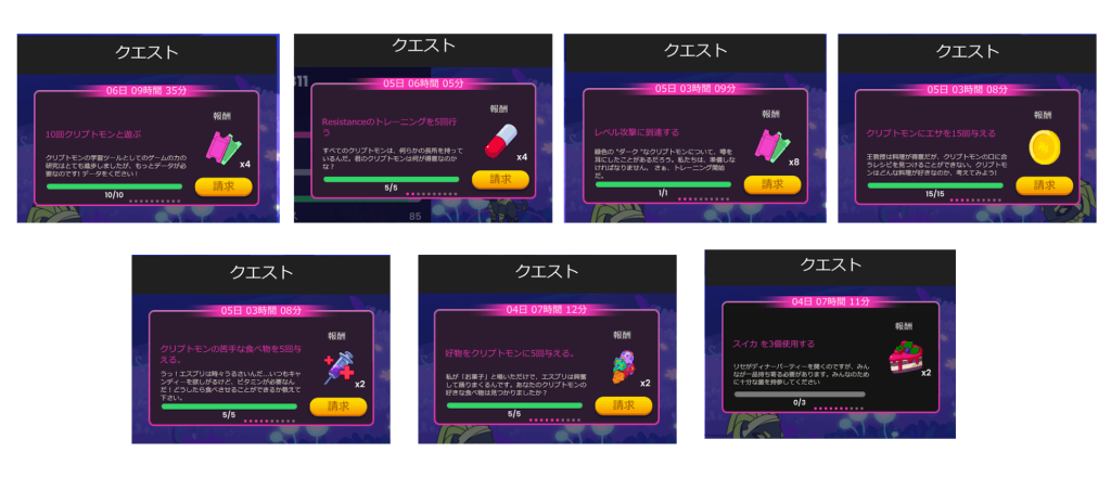 「〇〇を**回する」といったクエストは、クリプトモンが2体いるおかげでクリアが非常に楽です。